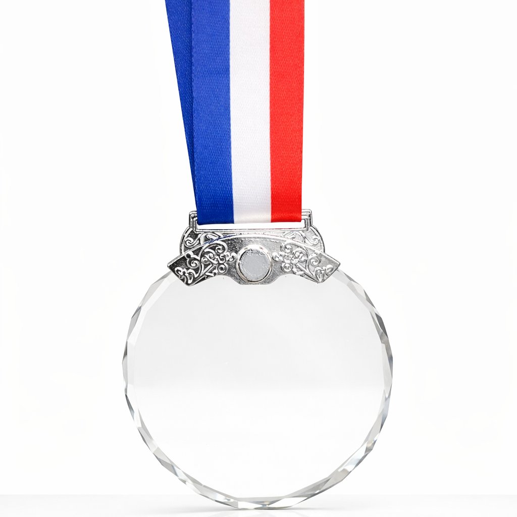 Stříbrná skleněná medaile s pískováním vlatního textu nebo motivu 1KS