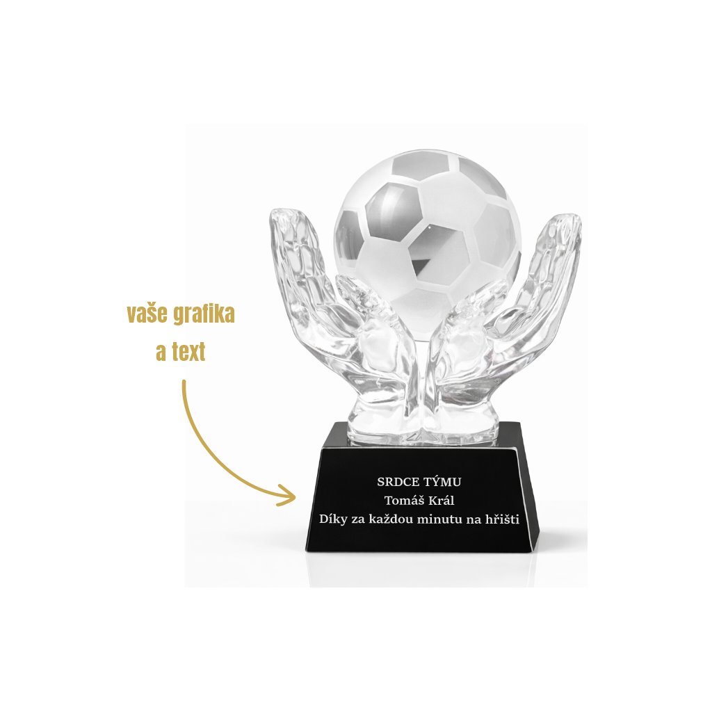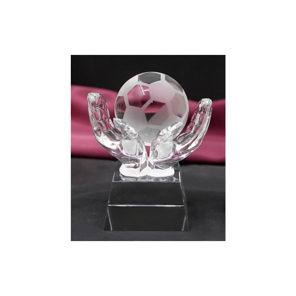 Skleněná fotbalová trofej na podstavci s gravírováním 1KS