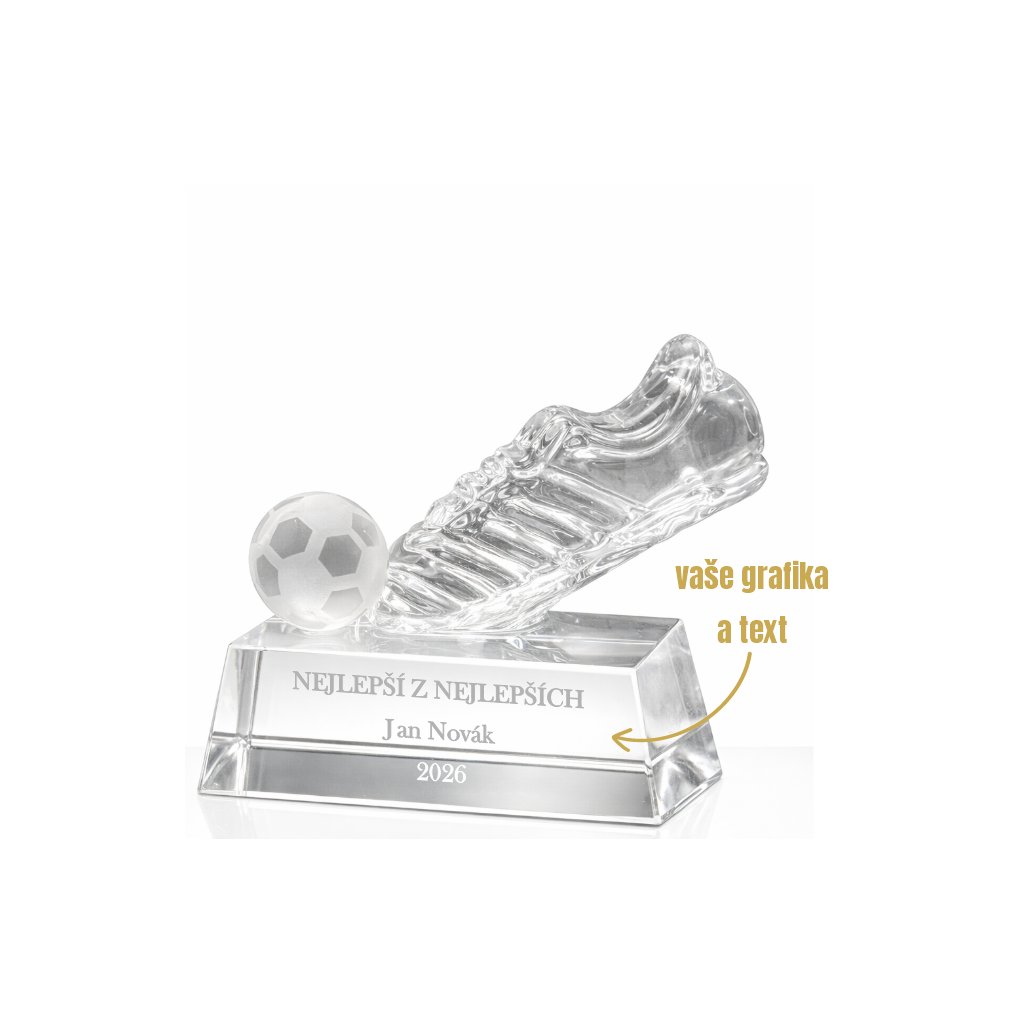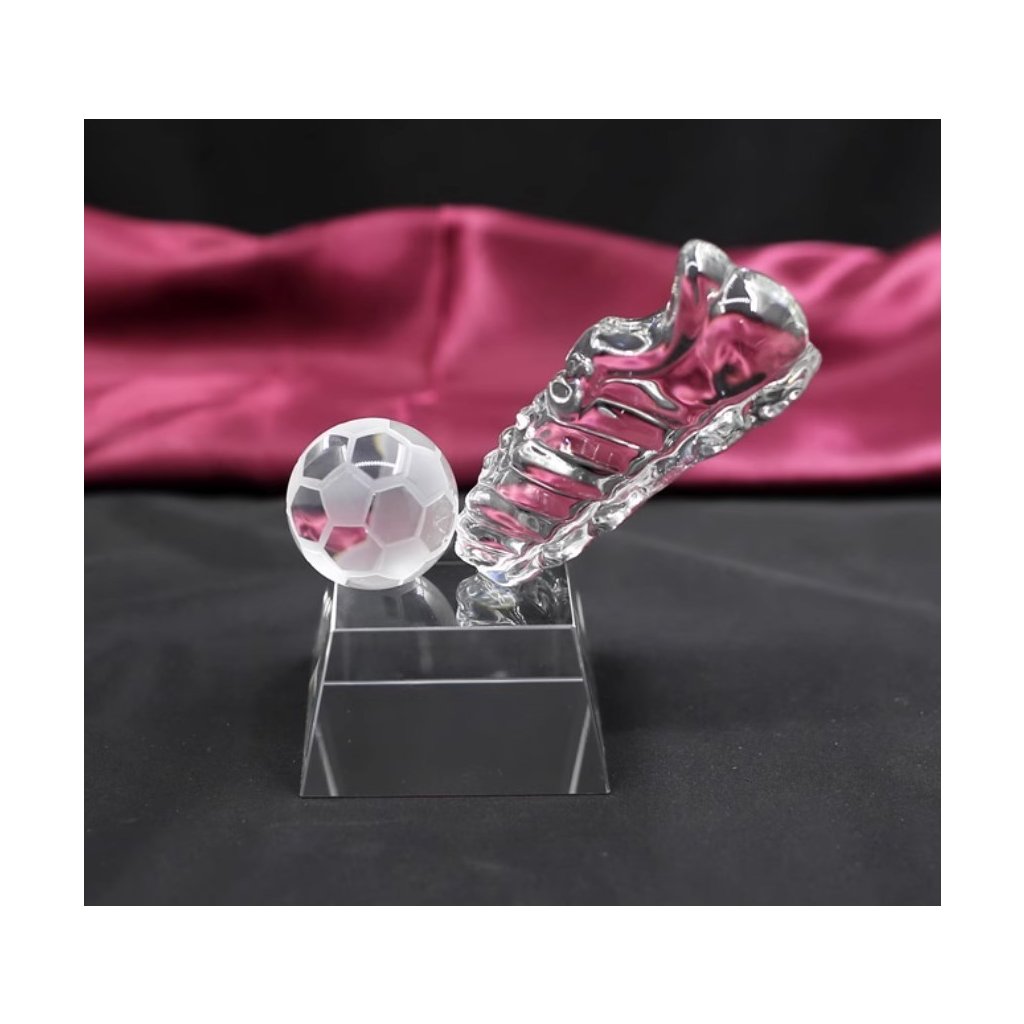 Skleněná fotbalová trofej na podstavci s gravírováním KOPAČKA 1KS