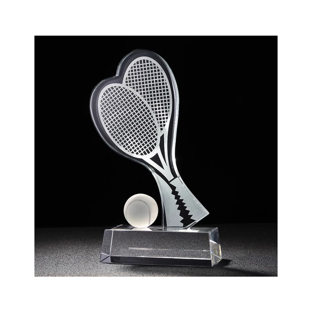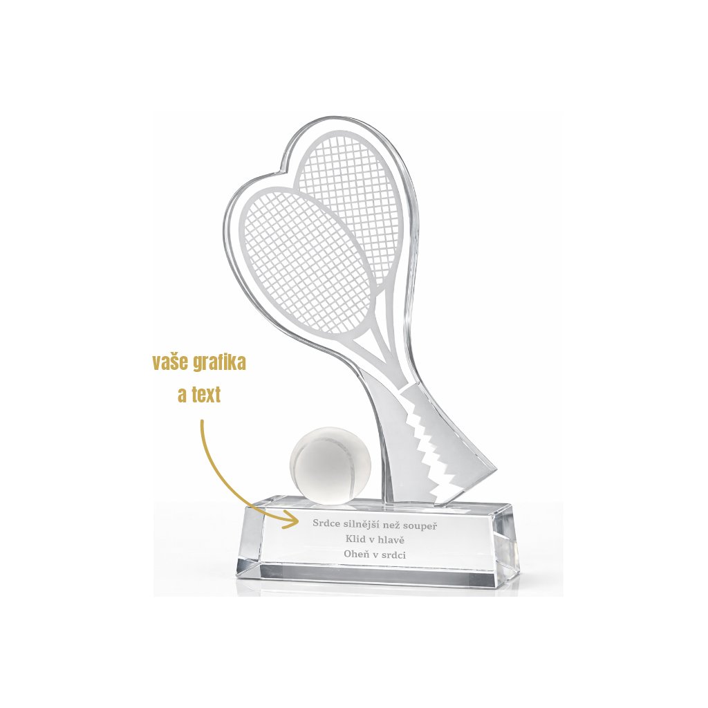 Skleněná tenisová trofej na podstavci s gravírováním 24 cm 1KS