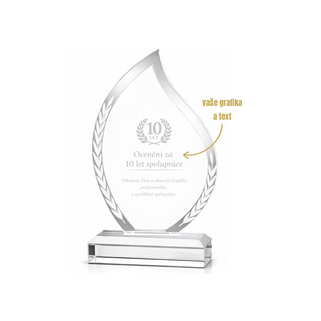 Skleněná plaketa na podstavci LIST 21x12 cm 1KS